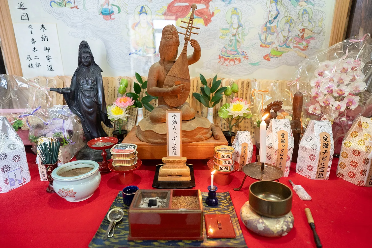 ペットが次の世界でも穏やかで幸せに過ごせるよう、心を込めて永代供養を行っております。愛浄観音様の足元に位置する合祀墓では、合同供養に加え、個別納骨にも対応しています。ご遺骨の供養方法については、ご家族それぞれの想いやご希望を丁寧に伺い、最適な方法をご提案いたします。多様な供養のかたちをご用意し、大切な想いに寄り添いながら、心を込めてご案内いたします。